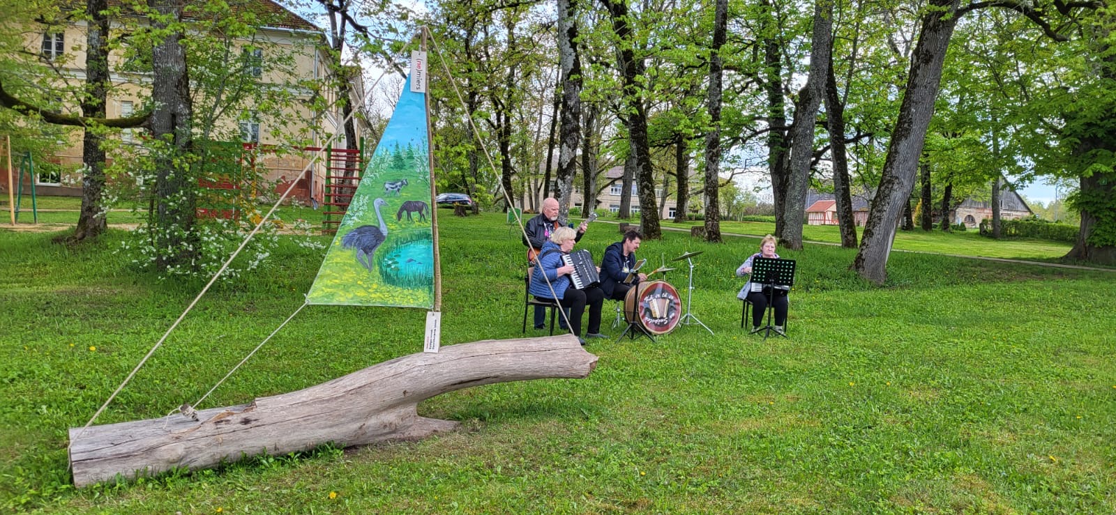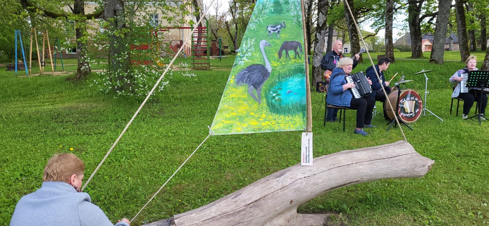 Kuldīgā, skvērā pie Adatu fabrikas – ikviens interesents tika aicināts piedalīties radošā darbnīcā kopā ar māksliniekiem Ievu Vītolu-Lindkvistu un Oli Lindkvistu. Kopīgiem spēkiem un idejām tika apgleznotu bura un turpat arī pacelta.