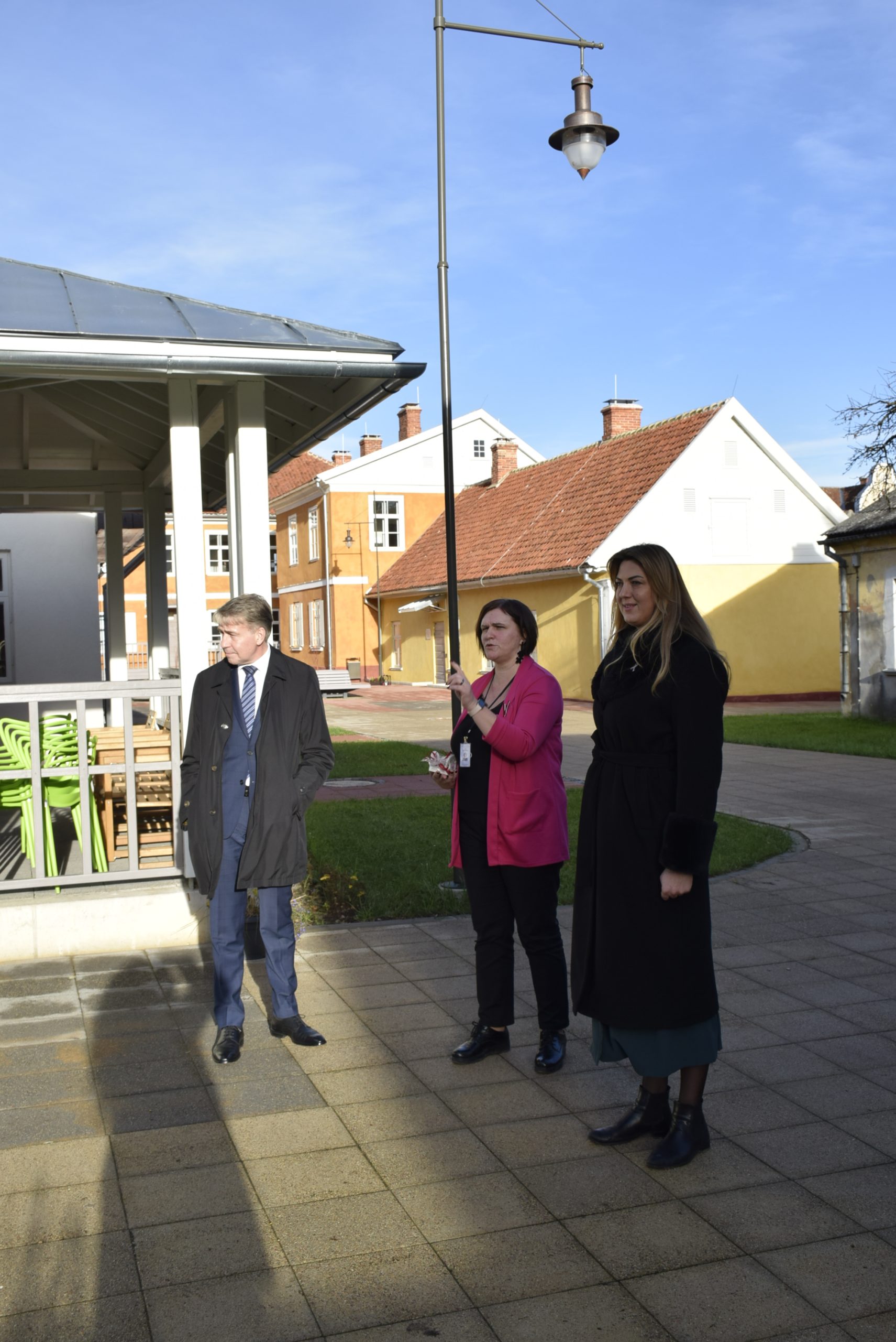 Radoši industriālā Kaļķu ielas kvartālā ministrs tikās ar uzņēmuma pārstāvi Robertu Jansonu, kurš pastāstīja, kā pirms četriem gadiem no pamestas garāžas teritorija kļuvusi par mājvietu vietējās uzņēmējdarbības attīstībai.