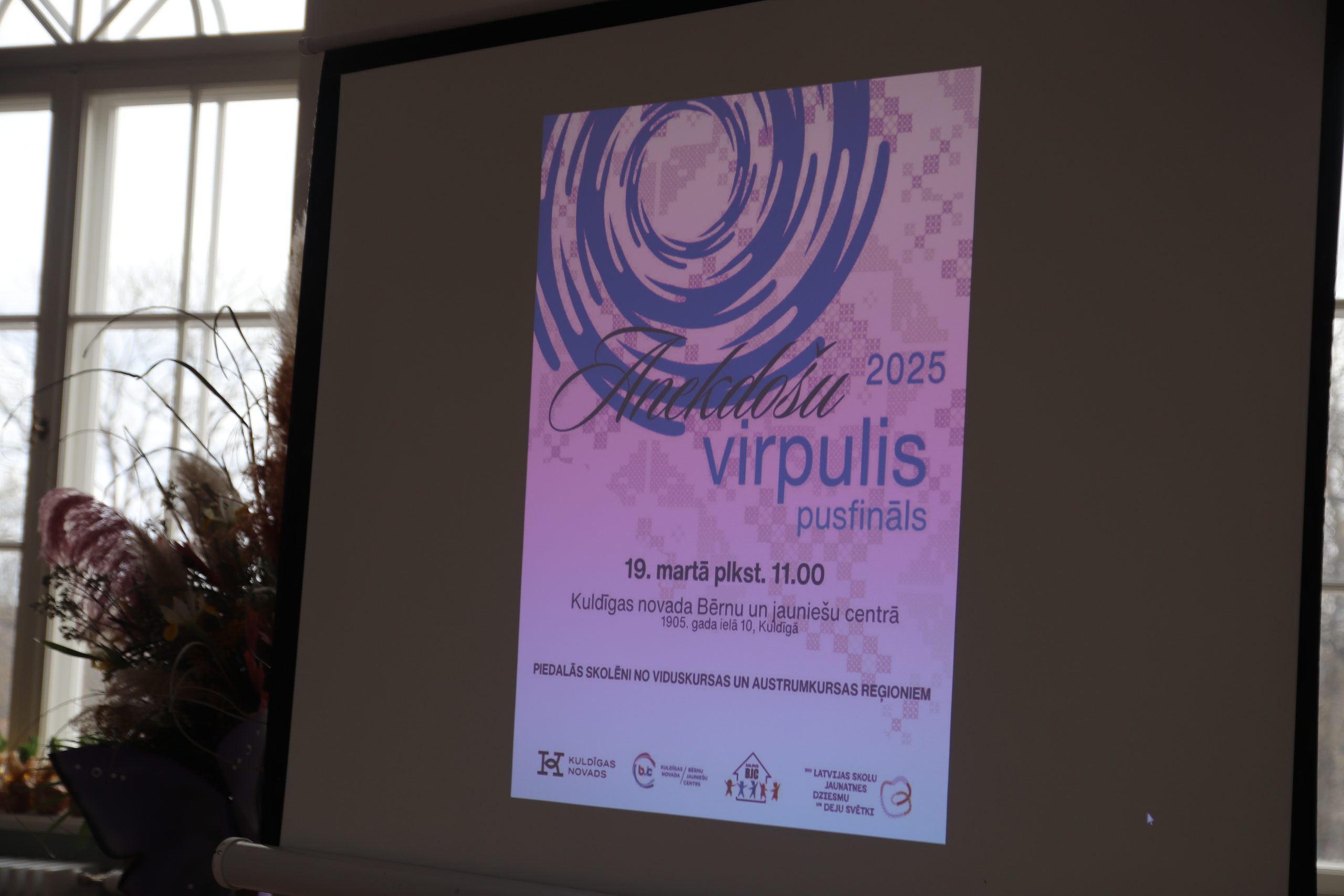 19. martā Kuldīgas novada Bērnu un jauniešu centrā, sadarbībā ar Saldus Bērnu un jaunatnes centru norisinājās Viduskursas un Austrumkursas folkloras konkursa “Anekdošu virpulis 2025” pusfināls, gatavojoties XIII Latvijas skolu jaunatnes dziesmu un deju svētkiem.
