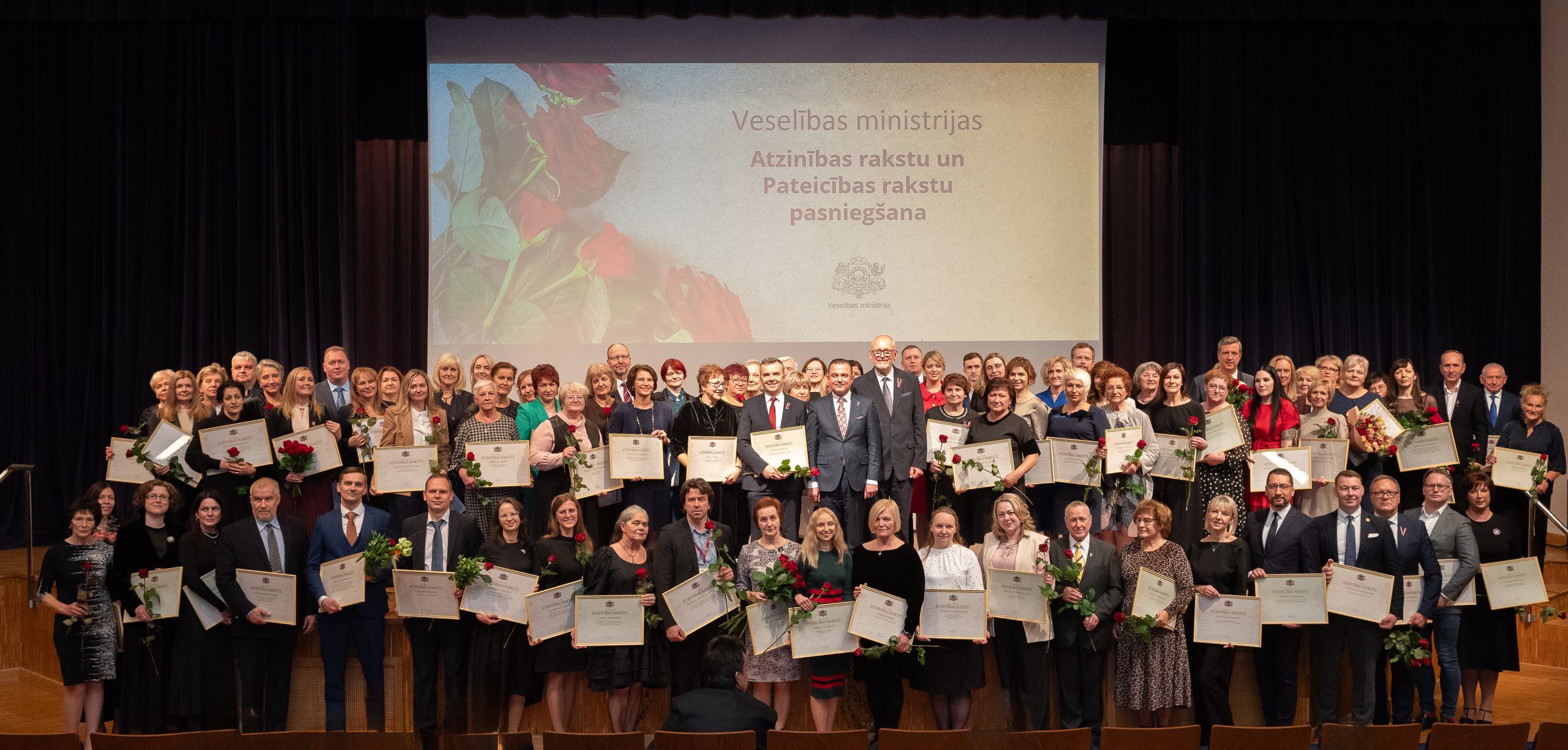 Veselības ministrijas apbalvojums – Atzinības raksts tika pasniegts 62 nozares profesionāļiem. Starp augstā apbalvojuma saņēmējiem bija arī Kuldīgas slimnīcas Iekšķīgo slimību nodaļas vadītāja, interniste, pneimonoloģe Vija Rendniece un Neatliekamās medicīniskās palīdzības un pacientu uzņemšanas nodaļas dežūrārste Jeļena Mjasņikova.