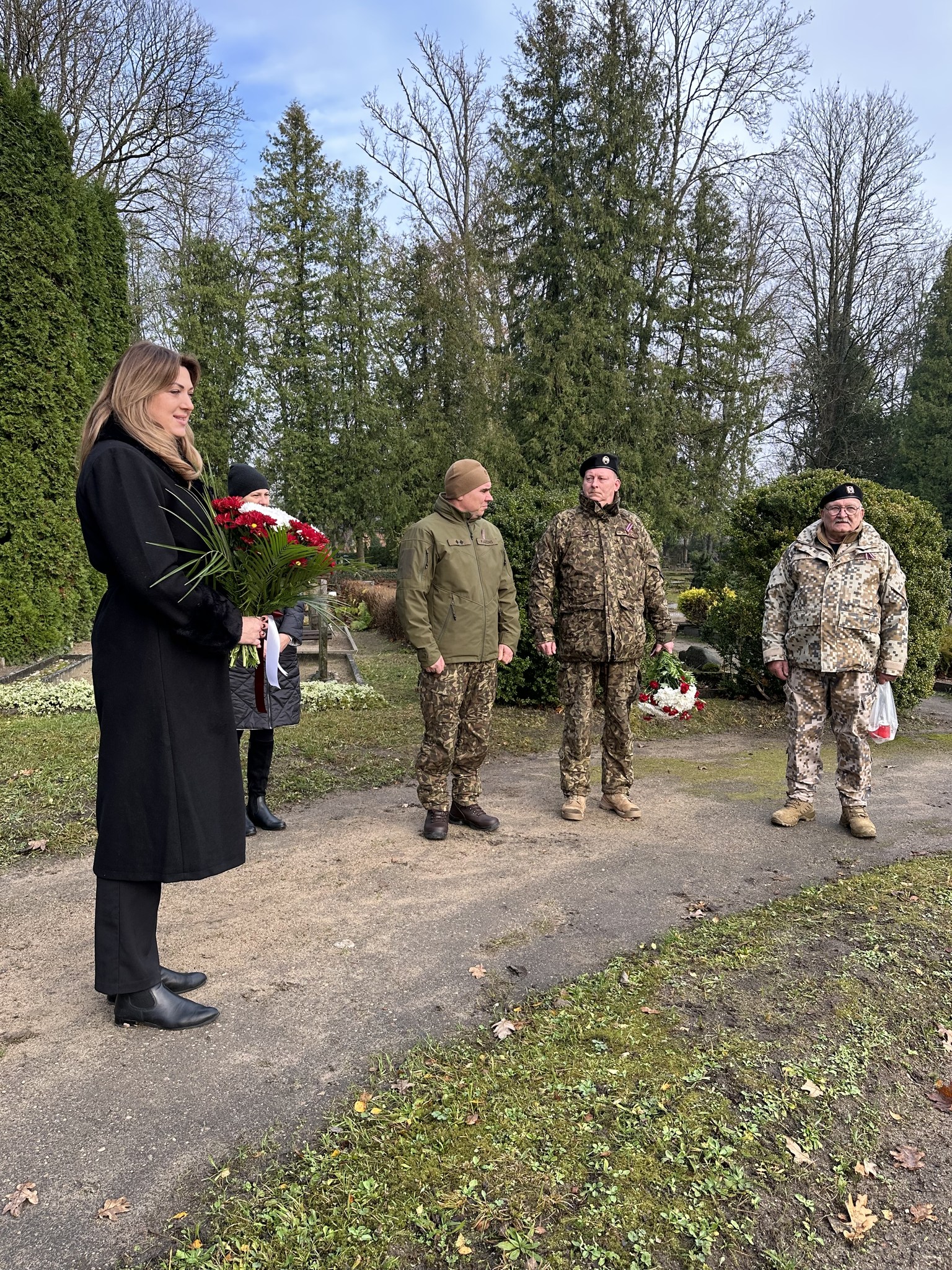 Lāčplēša diena Kuldīgā iesākās ar piemiņas brīdi Annas kapos – Kuldīgas novada domes priekšsēdētāja Inese Astaševska, godinot un pieminot varoņus, kopā ar zemessargiem no Zemessardzes 4. Kurzemes brigādes 45. kaujas nodrošinājuma bataljona nolika ziedus piemiņas vietā brīvības cīnītājiem.