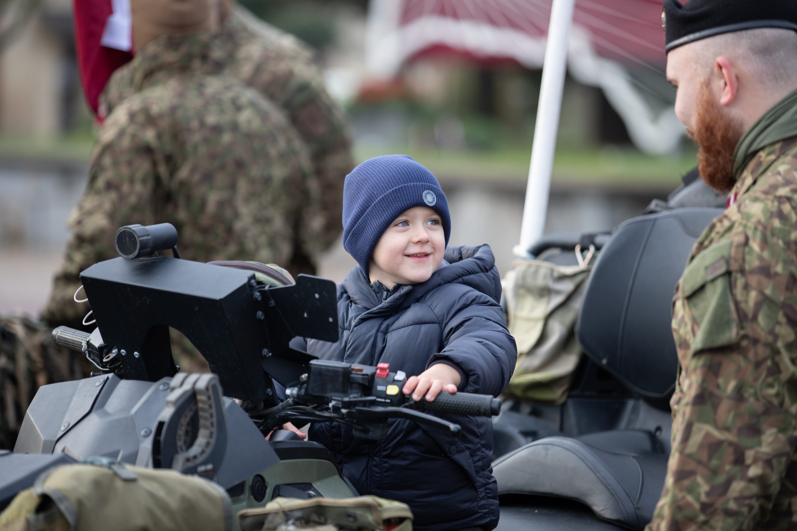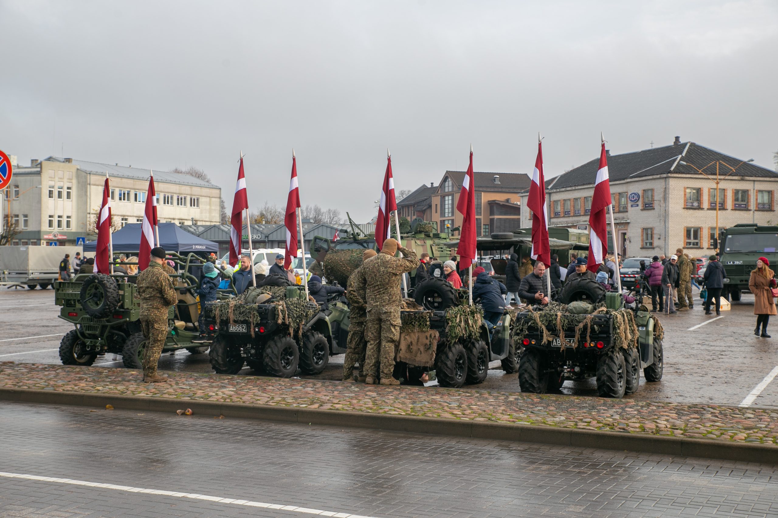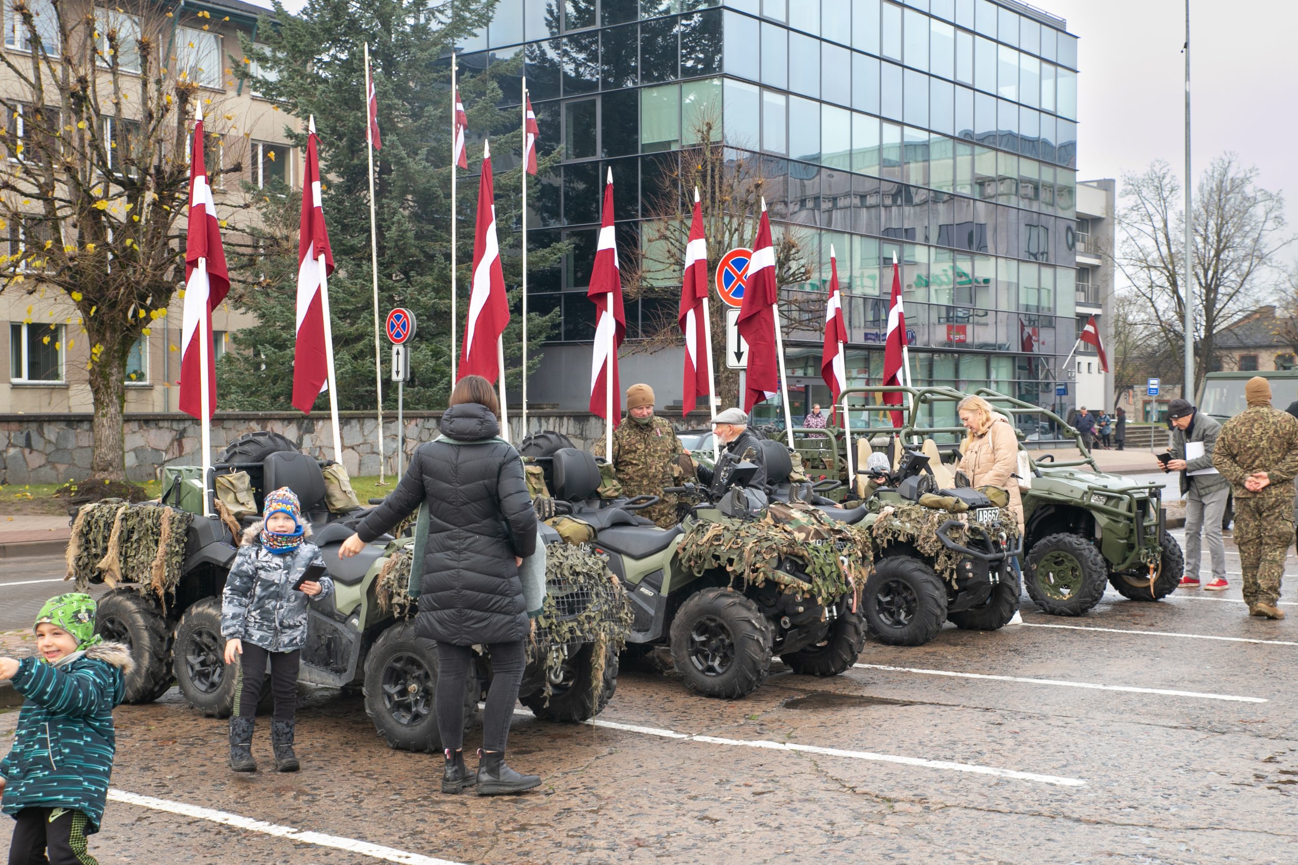 Kuldīdzniekus svētkos sveica karogiem rotāta militārā transporta parāde, bet uz Pilsētas laukuma bija iespēja aplūkot Zemessardzes 4. Kurzemes brigādes 45. kaujas nodrošinājuma bataljona tehniku un ekipējumu, bet Kuldīgas novada muzejā bija atvērta sarkanbaltsarkano lentīšu locīšanas darbnīca.