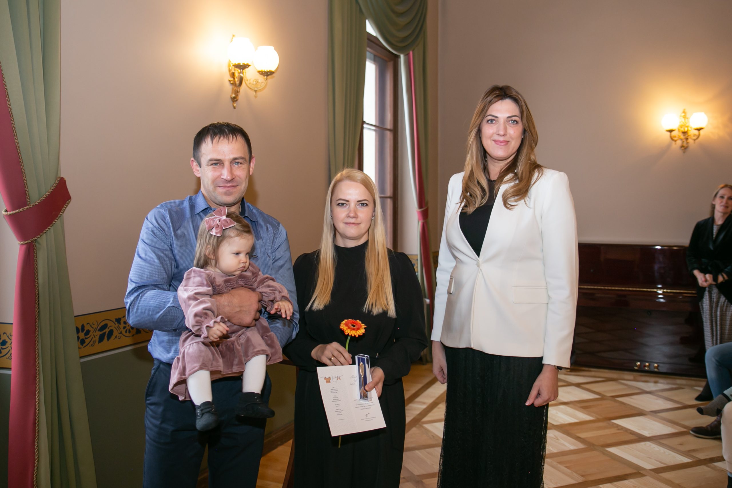 Šonedēļ Kuldīgas novada Domē viesojās paši jaunākie Kuldīgas novada iedzīvotāji – viņi kopā ar vecākiem, brālīšiem un māsiņām bija atnākuši pēc piemiņas dāvaniņas – sudraba karotītes, kas vienmēr atgādinās par dzimto vietu. Šī gada pirmajos sešos mēnešos Kuldīgas novada dzimtsarakstu nodaļā reģistrēti 139 bērniņi – 68 meitenes un 71 zēns, kas ir par 22 mazuļiem vairāk nekā pērn šādā pašā laika posmā.